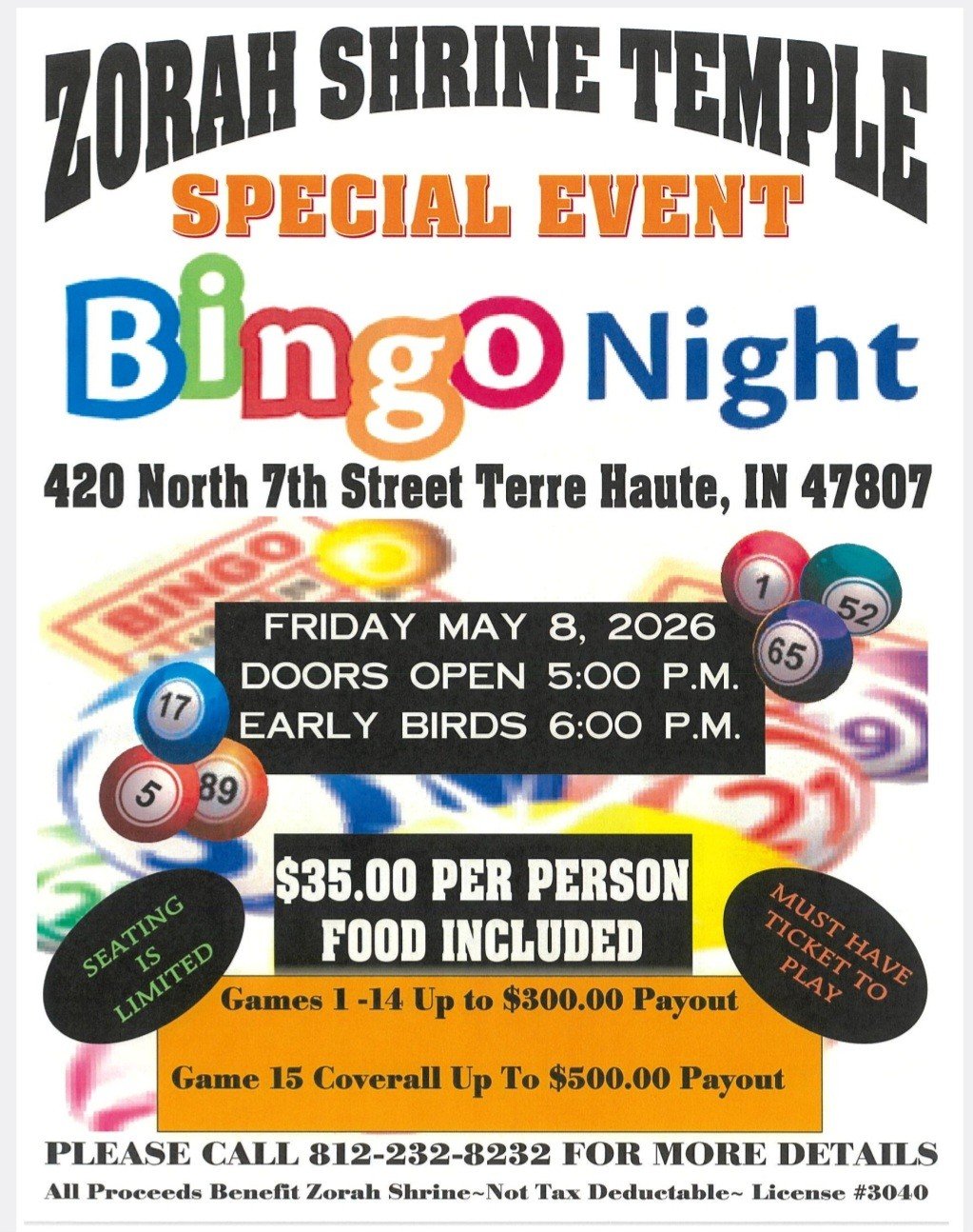 With two locations in Terre Haute; the iconic Zorah Shrine in downtown Terre Haute and the Zorah Country Place there are plenty of options for fun and community! Join us for a comedy show, concert or children’s event. Or rent the facility for your own event!